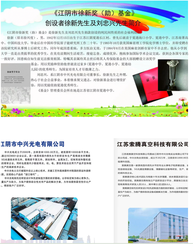 - 江陰市夏港中學舉行“徐新獎學金——中興助學金”頒獎儀式